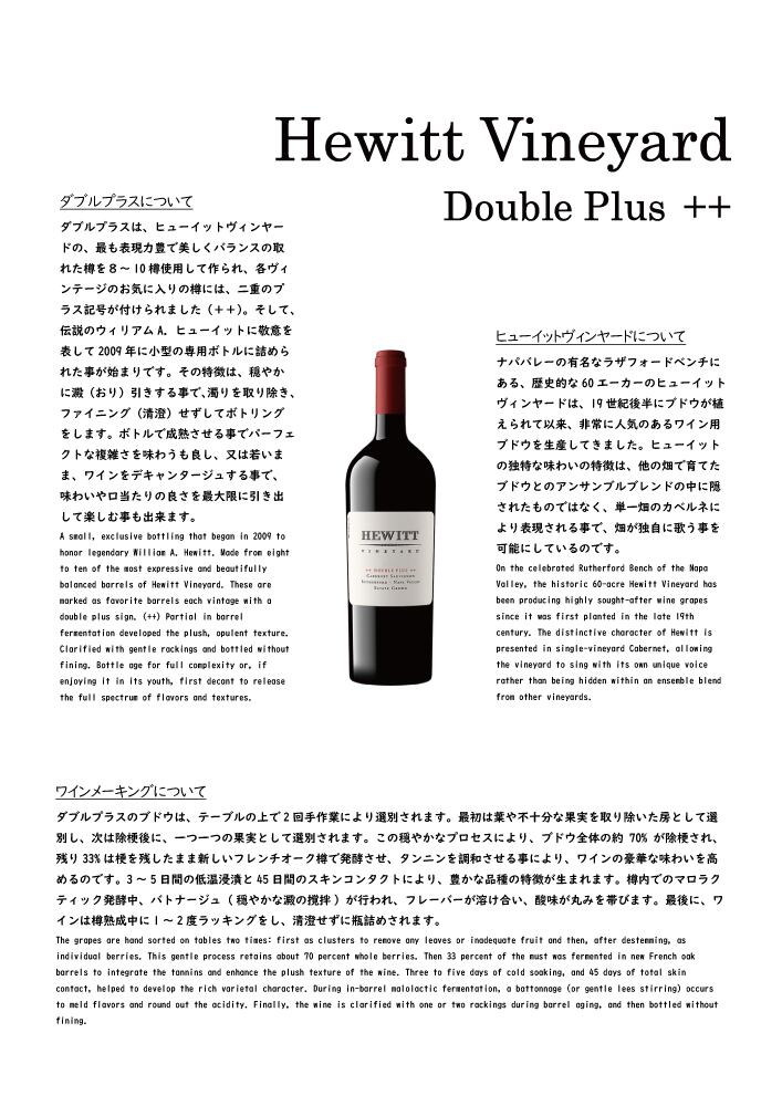 ヒューイットヴィンヤード ダブルプラス 2017【Hewitt Vineyard Double Plus】 赤ワイン・カリフォルニア